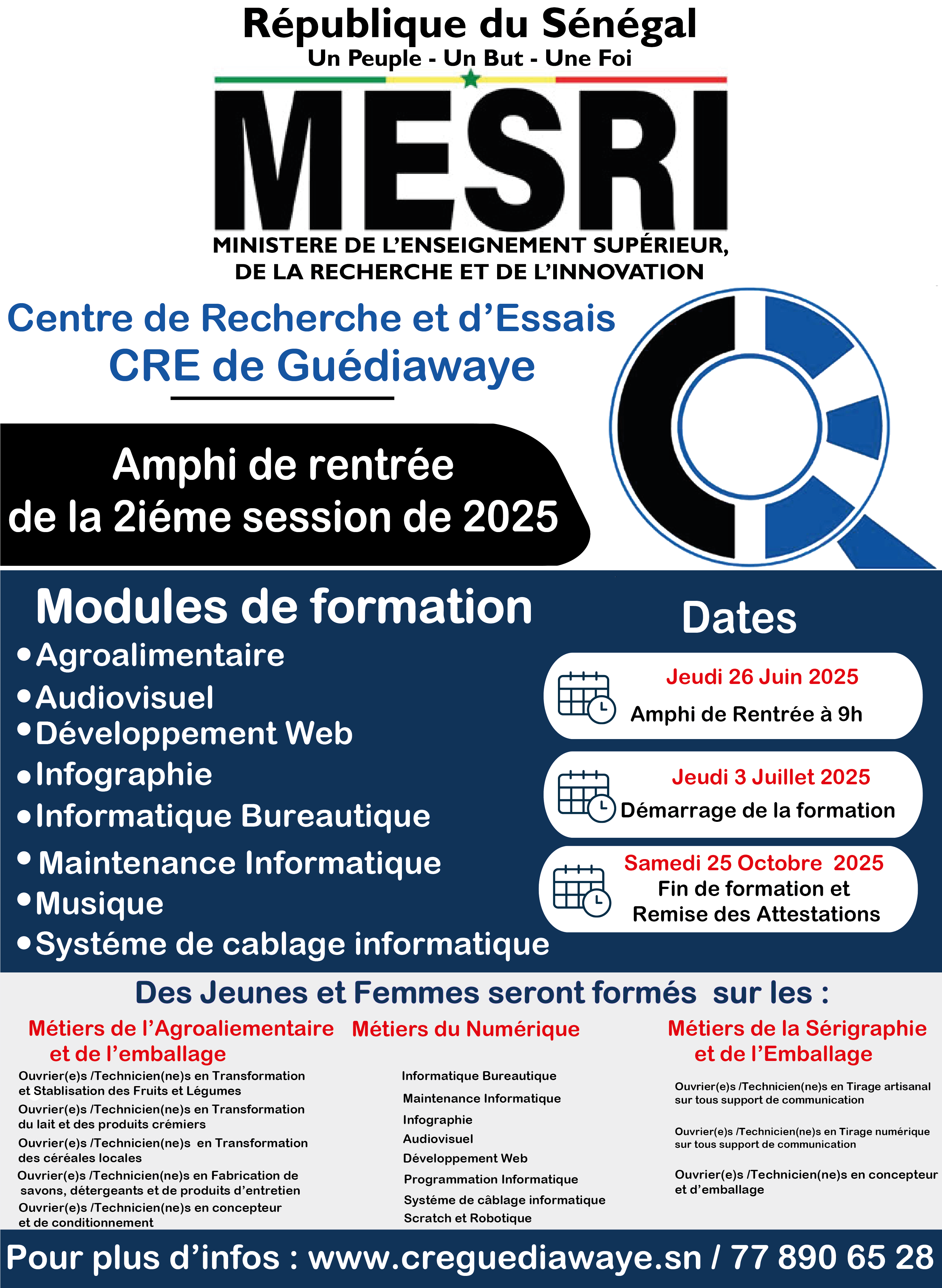 Dans le cadre de la clôture des activités de formation du Camp de vacances 2025, nous avons organisé une reportage avec la Direction de la Radio Télévision Scolaire sur les différents ateliers de formation au CRE de Guédiawaye.